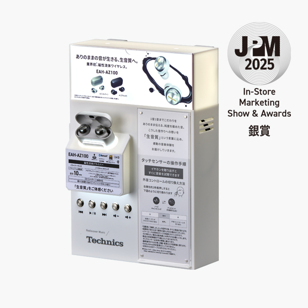 - 昨今サイネージを駆使した動画での説明訴求が多い中、