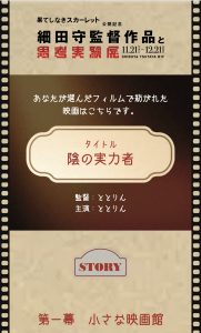 今回の思考実験展は、自分が監督と脚本を手がける映画を体験を通して作り上げるというお題でした。