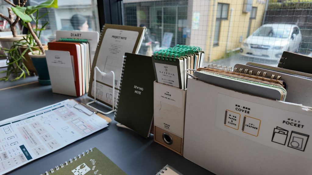 『HININE NOTE』さん。印刷会社が手がける専門店で、オーダーメイドのオリジナルノート作りを体験できます。