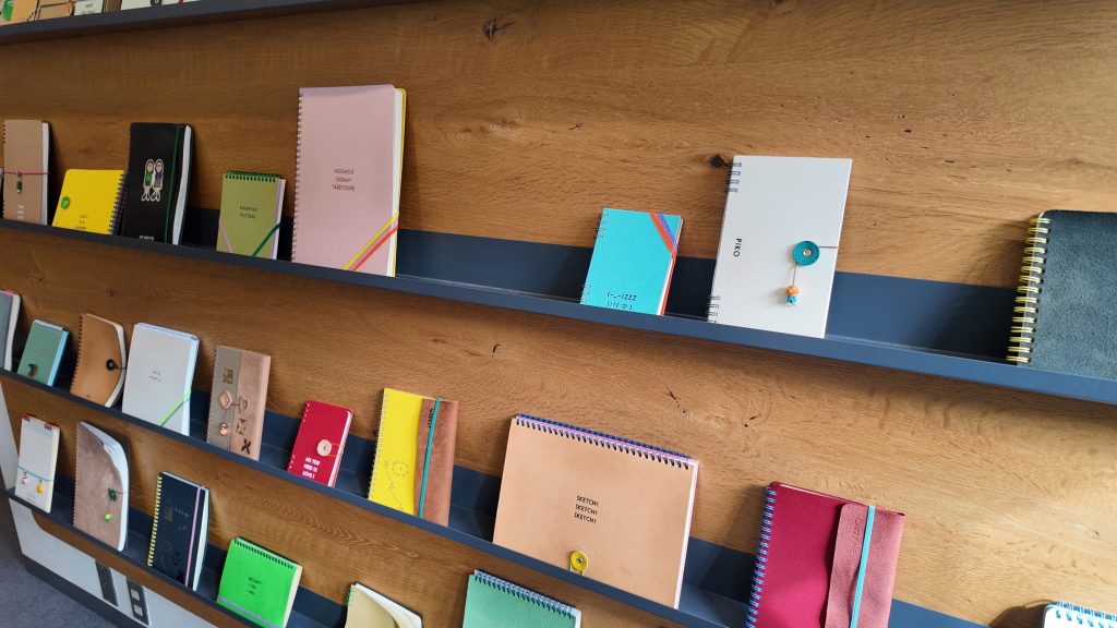 店内に入ると壁面にはカラフルなノート見本がずらり…